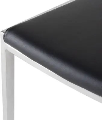 The Aaron Dining Chair is an alluring combination of stainless steel andnaugahyde. The Aaron’s clean, versatile, and contemporary geometric frameprovides comfort with a streamlined elegance.