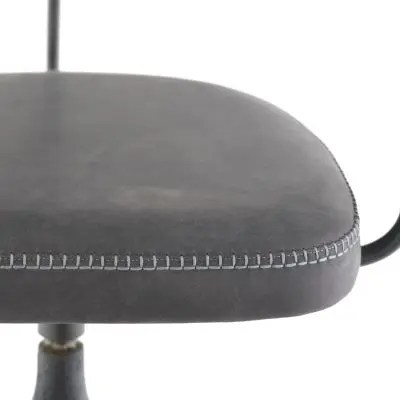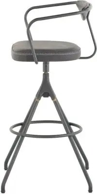 The Akron bar stool fuses a wooden back, cast-iron body, handsome brassdetailing, and contrast-stitched leather seat, presenting a balanced timelesscoherence. A sophisticated urban design, suitable for both commercial andresidential settings.